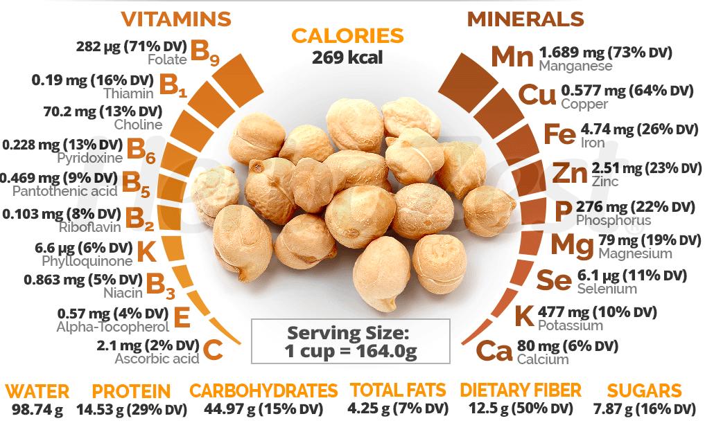 One cup of cooked chickpeas contains about 14–15 grams of protein — perfect for vegetarians, vegans, or anyone looking to reduce meat intake. Unlike animal proteins, chickpeas also provide fiber and essential nutrients that support heart health and overall well-being.